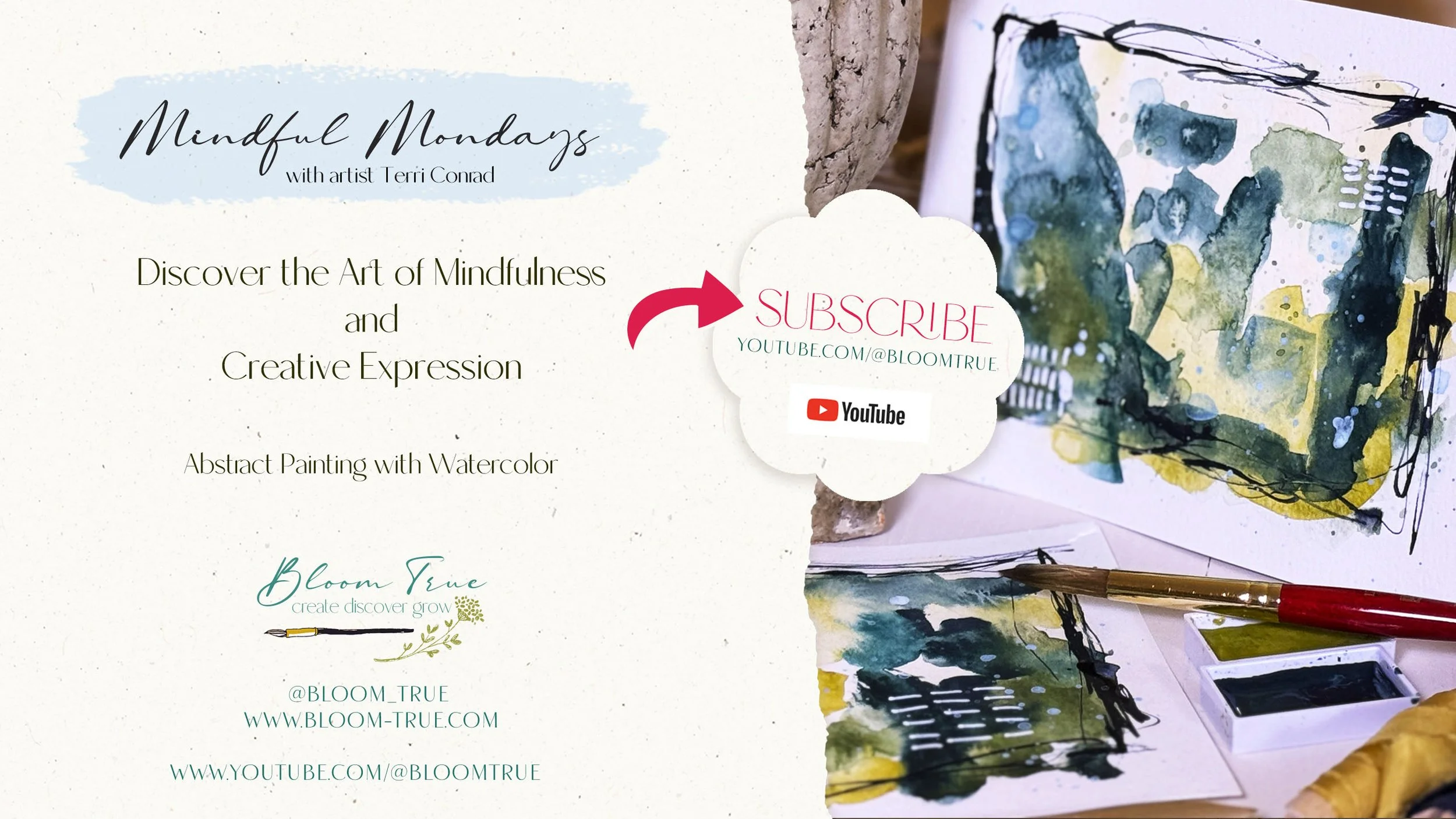 In this FREE calming painting session, Terri gently guides you through a slow, intuitive, and playful approach to expressive abstract painting. Using simple materials—watercolor, brushes, acrylic ink, and paper—you’ll experience creative expression as a grounding form of self-care and mindful reflection.